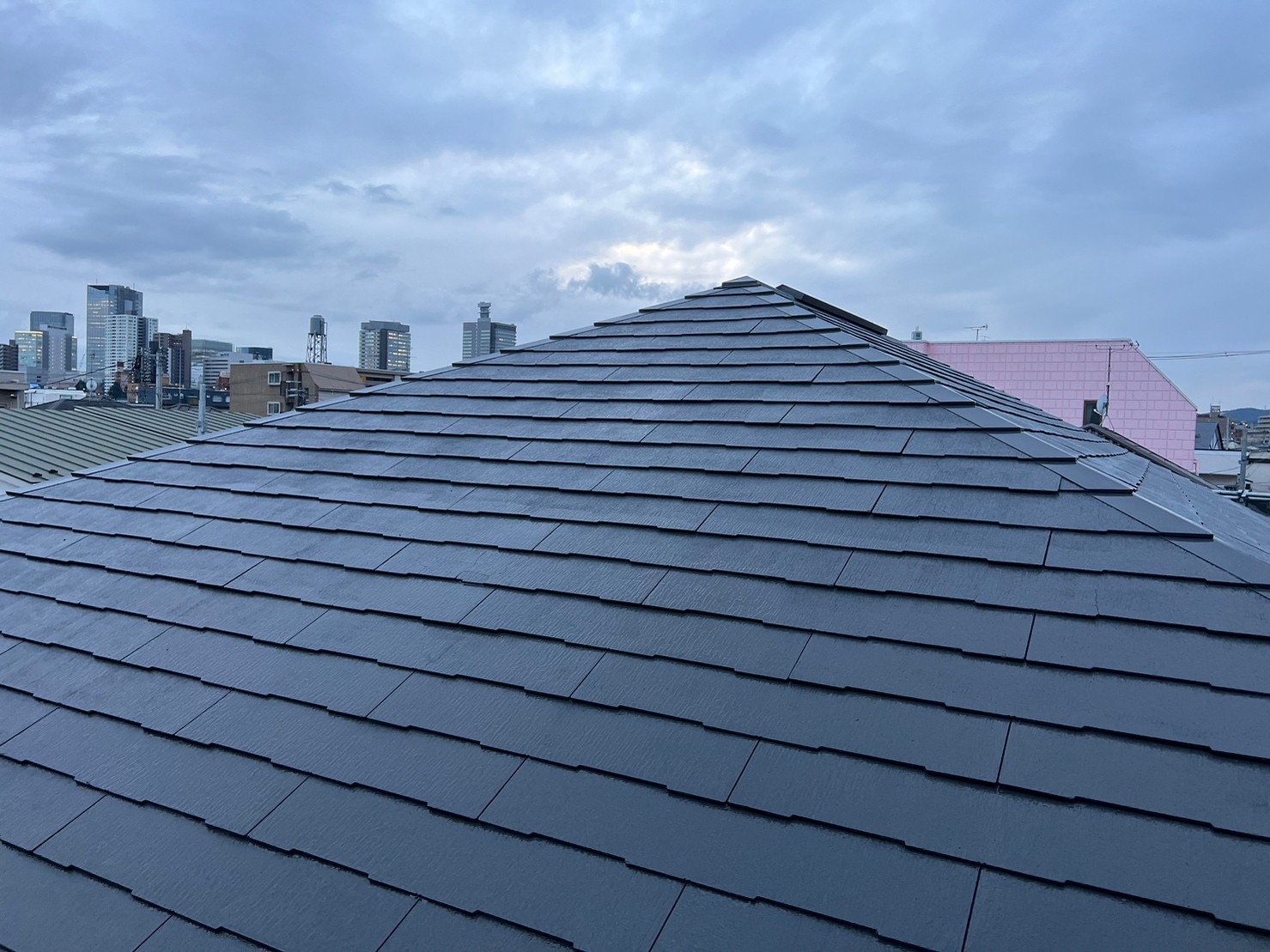 仙台市K様邸 屋根塗装工事 作業内容 高圧洗浄⇨下塗り(2回)⇨中塗り⇨上塗り 通常3行程なのですが下地が傷んでいたためサービスで下塗り1回プラス致しました☺️ 仕上りも良くお客様に大変ご満足頂けました😊